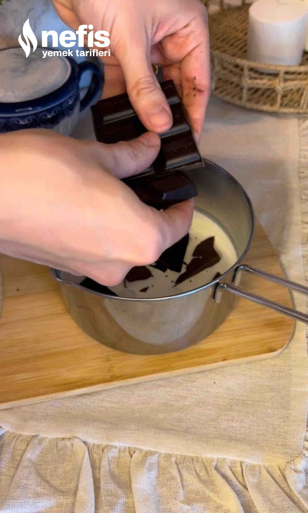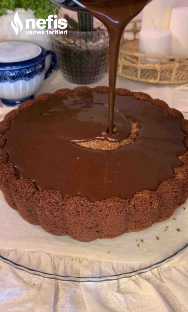 3. Uygun bir kaba kremayı alıp kenarları hafif köpük olana kadar ısıtıp altını kapatıyoruz. İçine kırdığımız çikolataları ek edip büsbütün çözünene kadar karıştırıyoruz ve ganajımız hazır. Sıcaklığı çıkmış ganajı kekin üzerine döküyoruz.
