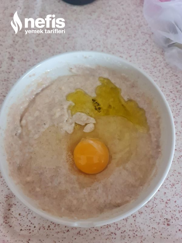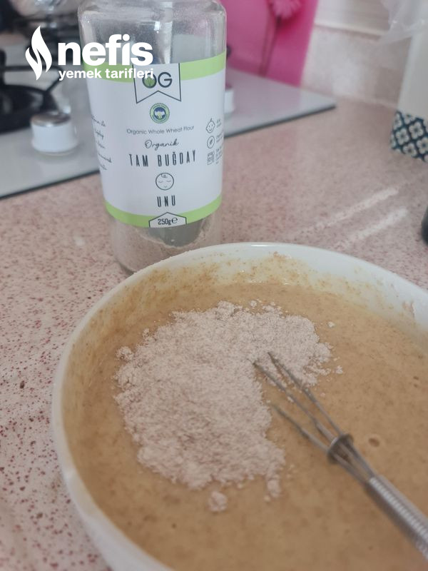 2. 1 fincan kefiri zeytinyağını tam buğday unu karbonatı ekliyoruz.