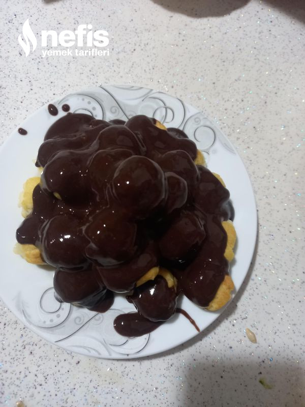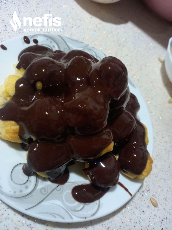 - Pişen hamurların içine kremayı dolduralım ve üzerlerine çikolata sosu dökelim servise hazır. Afiyet olsun.