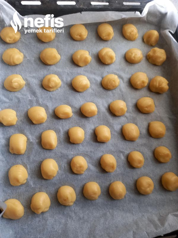 - Yağlı kağıt serdiğimiz fırın tepsisine hamurları sıkalım evvelce ısıttığımız 180 derece fırında 10 dakika pişirelim.