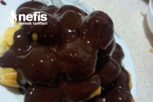 - Pişen hamurların içine kremayı dolduralım ve üzerlerine çikolata sosu dökelim servise hazır. Afiyet olsun.