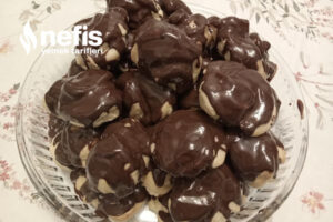 5. Üzeri için bitter çikolata benmari yolu eritilir, yağ eklenerek parlaklık sağlanır krema dolgulu hamurların üzeri kaplanır.