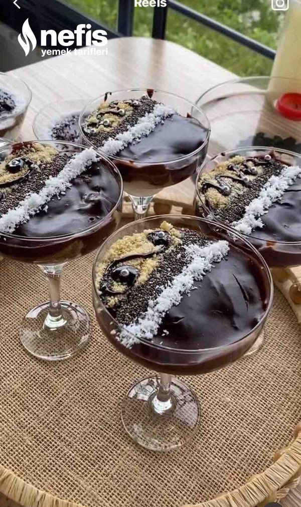 5. Üzerine çikolatalı pudingimizi dökelim.