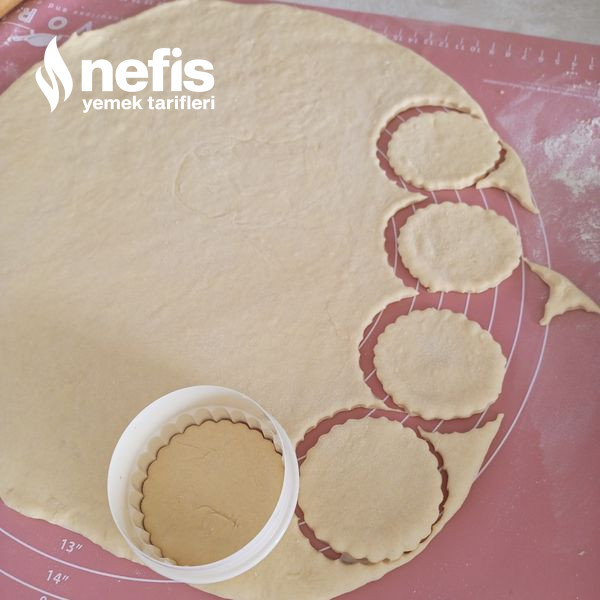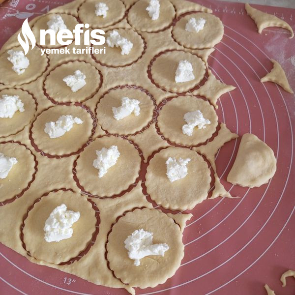 - Bardak ya da yuvarlak bir kalıpla keselim içine beyaz peynir koyup kapatalım hafif kenarlarından bastıralım öbür bezeyi de birebir formda hazırlayalım.