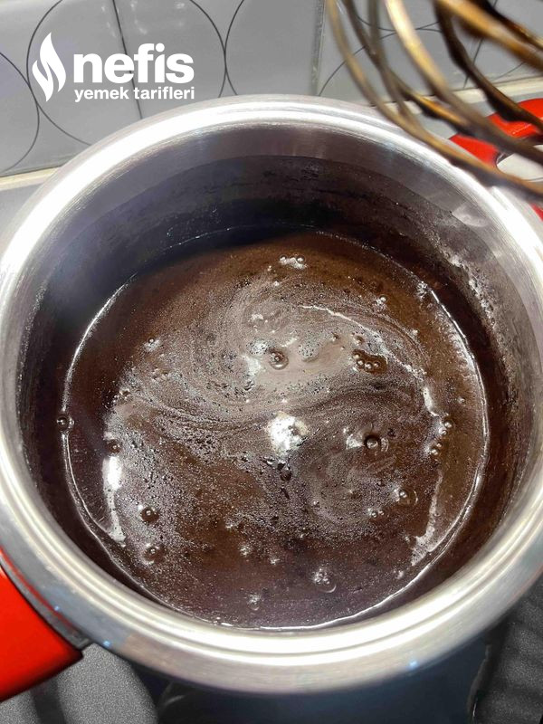 7. Sos için; tüm gereçleri bir tencereye boşaltalım. Çikolata ve şeker büsbütün eriyinceye kadar hafif kaynatalım karıştırarak. Sonra altını kapatalım sos soğuyana kadar bekleyecek ve ıslak kekimiz hazır. Deneyeceklere afiyet olsun🌸😇