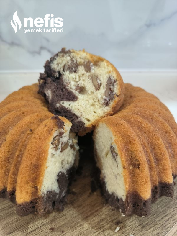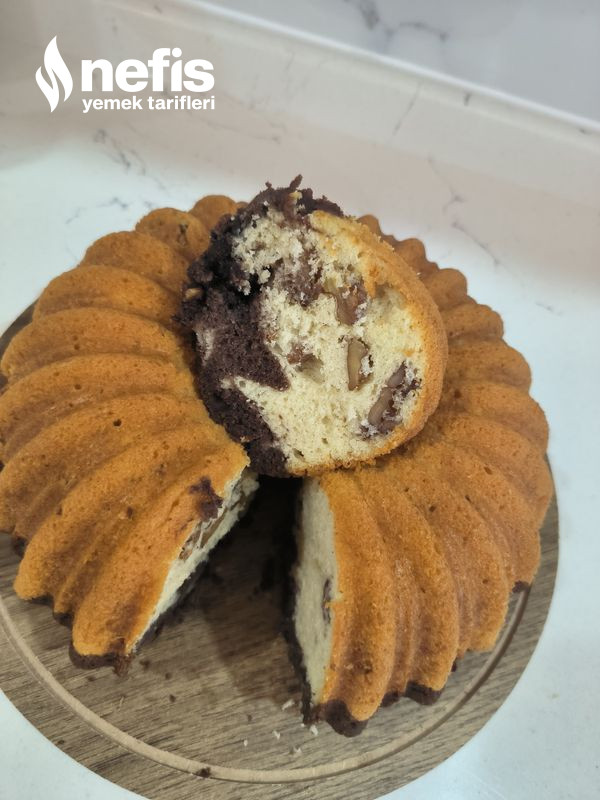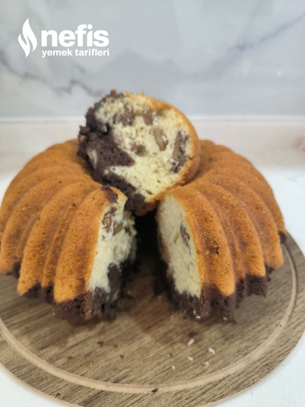 - Kek kalıbı yağlanır ve evvel beyaz kek hamuru daha sonra kakaolu kek hamuru dökülür hafif çubuk yardımı ile karıştırılır.