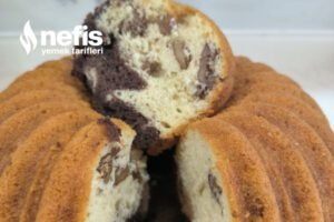 - Kek kalıbı yağlanır ve evvel beyaz kek hamuru daha sonra kakaolu kek hamuru dökülür hafif çubuk yardımı ile karıştırılır.