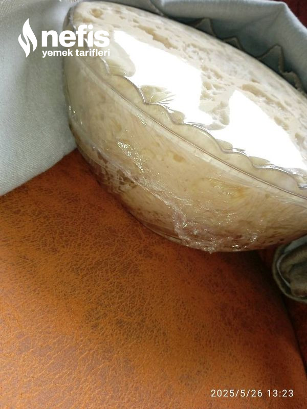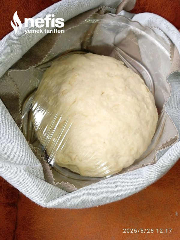 - Hamurumuzun üzerini streçleyip etrafına pak bir bez örterek 1 saat kadar mayalanmaya bırakalım.
