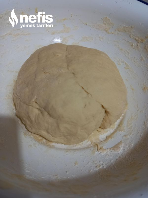 4. Sonra yavaş yavaş ununu ek edip yoğurmaya başlayalım 4 bardak undan sonra denetimli koyalım, hamur ele biraz yapışsın sert olmasın.