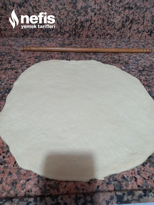 6. Tezgaha çok az un serpelim,oklava ile açalım ,yarım santim kalınlık kâfi. Çok ince olmasın.