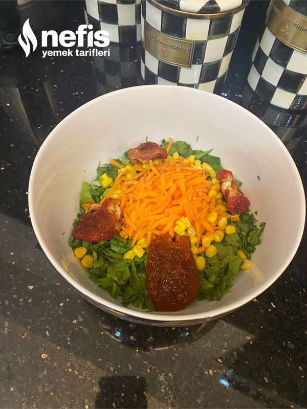 - Etrafına zevkinize nazaran kuru domatesleri ve mısırları ekleyip sosunu ek edelim ,afiyet olsun.