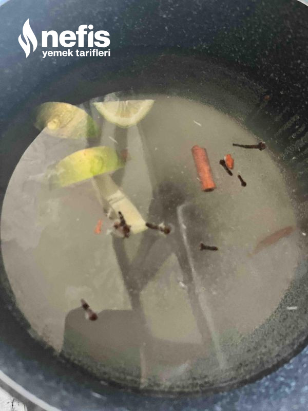 - 2 litre suya tarçın karanfil limon şekeri ekleyip 5 dakika kaynatalım.