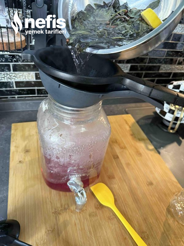 - Üzerine şekeri, karanfili, tarçını atıp kaynamış suyunu ek edin. Limonu da ek edip kapağını kapatıp 15dk dinlendirin rengi büsbütün çıksın.