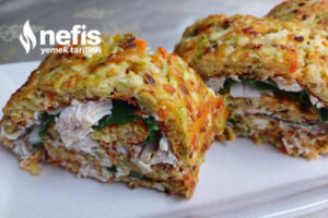 - Üstteki kağıdı çıkaralım, üzerine evvel labne peyniri sürelim, üzerine roka yapraklarını serpelim ,haşlanmış didiklenmiş tavuk göğsünü serpelim ,soğanı ince dilimleyip onlarıda üzerine serpelim, biraz tuz serpip limon suyu ekleyelim.