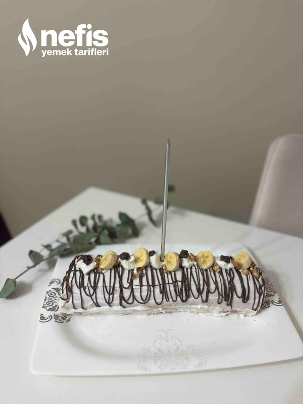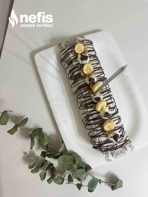 - Pastamızın kremasını sürelim. Hazırladığımız kremanın tamamını üzerine yayın. Sonra ortadan ikiye kestiğiniz muzu yahut öteki meyvelerden kremanın üzerine koyduktan sonra pişirme kağıdı ile rulo formunda sarabilirsiniz, böylelikle meyveli rulo pastalar yapabilirsiniz.