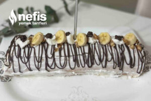 - Pastamızın kremasını sürelim. Hazırladığımız kremanın tamamını üzerine yayın. Sonra ortadan ikiye kestiğiniz muzu yahut öteki meyvelerden kremanın üzerine koyduktan sonra pişirme kağıdı ile rulo formunda sarabilirsiniz, böylelikle meyveli rulo pastalar yapabilirsiniz.