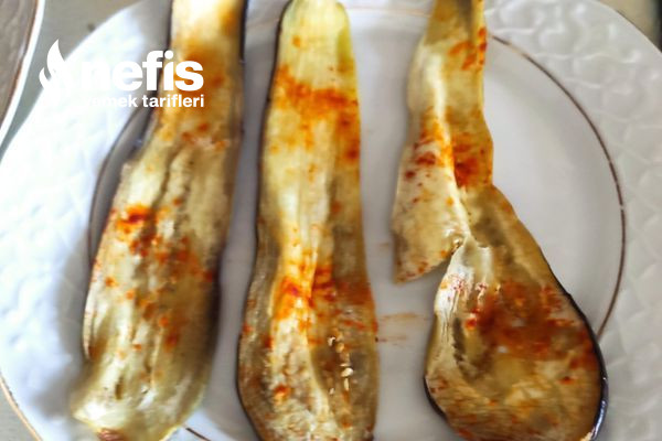 - Üzerlerine tekrar fırça ile zeytinyağı sürülür az ölçüde tuz ve kırmızı toz biber serpilerek 200 derecelik fırında hafif pembe olacak formda 15 dakika pişirilir. (ya da olağan tavada az yağda gerili önlü kızartılır).