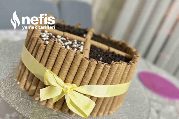 - Pastamızı sıvadıktan sonra rulo katları pastamızın yüksekliğinde olacak biçimde uzunluklarını ayarlayıp keserek pastamızın etrafına diziyoruz.