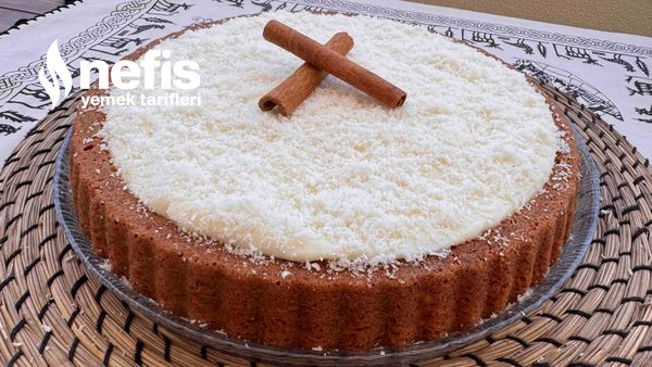 8. Fırından çıkan kekin birinci sıcağı çıktıktan sonra kremayı dökelim, çokça hindistan cevizi serpelim. Deneyecek olanlara afiyet olsun. 🥰.