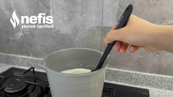 6. Krema için kremşanti hariç öbür gereçleri sos tenceresine alıp kıvam alana kadar pişirelim.