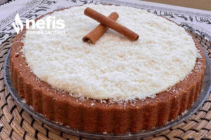 8. Fırından çıkan kekin birinci sıcağı çıktıktan sonra kremayı dökelim, çokça hindistan cevizi serpelim. Deneyecek olanlara afiyet olsun. 🥰.