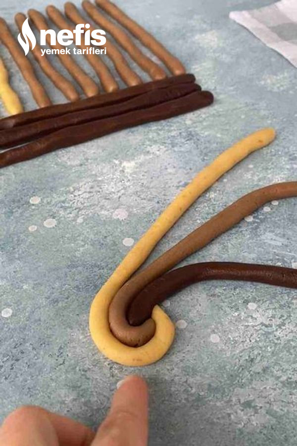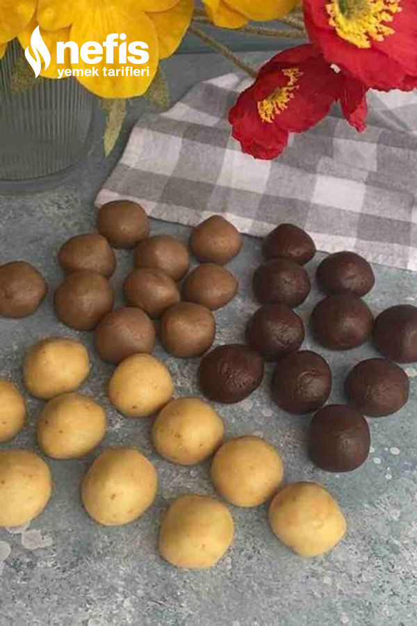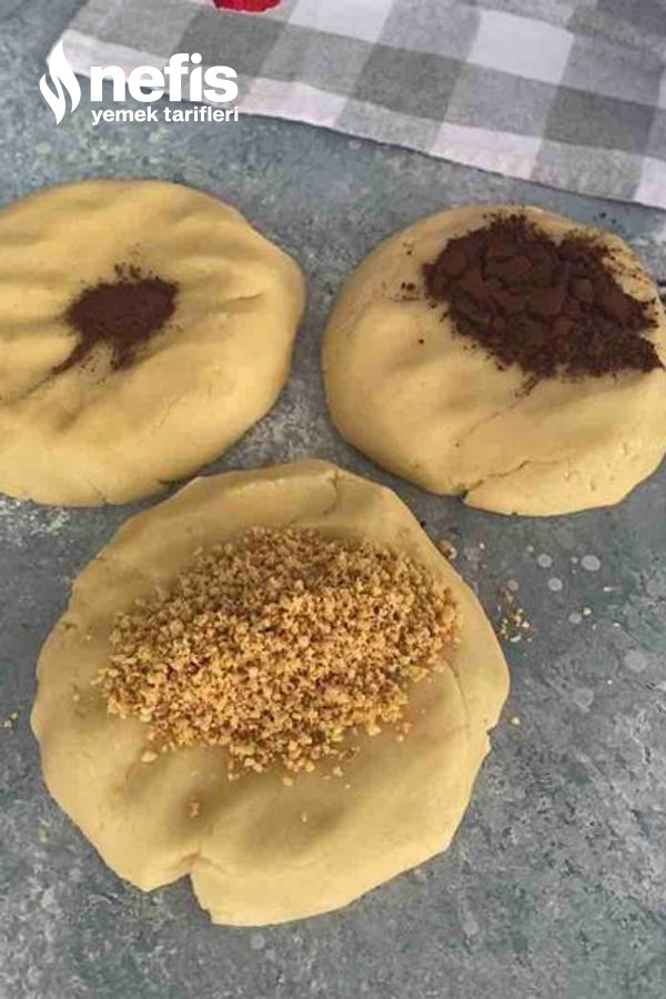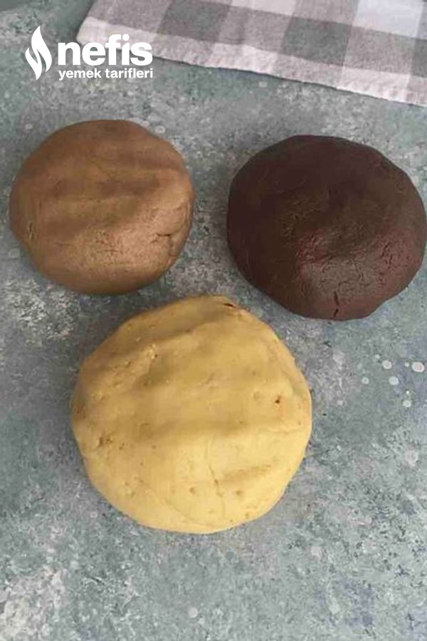- Bir kesimine toz fındık, ikincisine 1 çay kaşığı kakao, üçüncüsüne 1 tatlı kaşığı kakao ekleyelim ve yoğuralım.