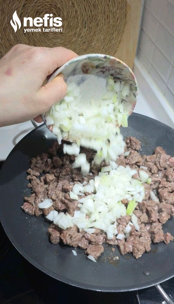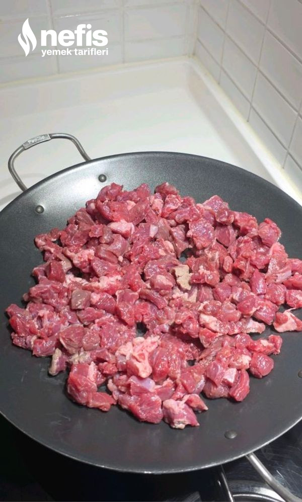 - 1 kilo kuşbaşından daha ince doğranmış dana eti