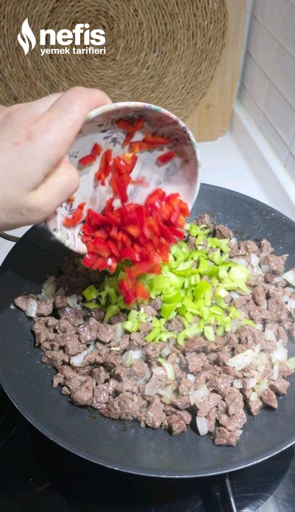 - İnce ince doğradığımız etleri kızgın tavada soteliyoruz.