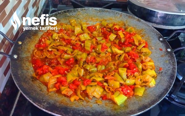 - Tamamen erdikten sonra doğranmış olduğumuz yeşil biber ve kapya biberimizi ekleyelim onlar pişerken soğanları ve rendelenmiş olan sarımsağı ekleyerek karıştıralım ve pişirmeye devam edelim.