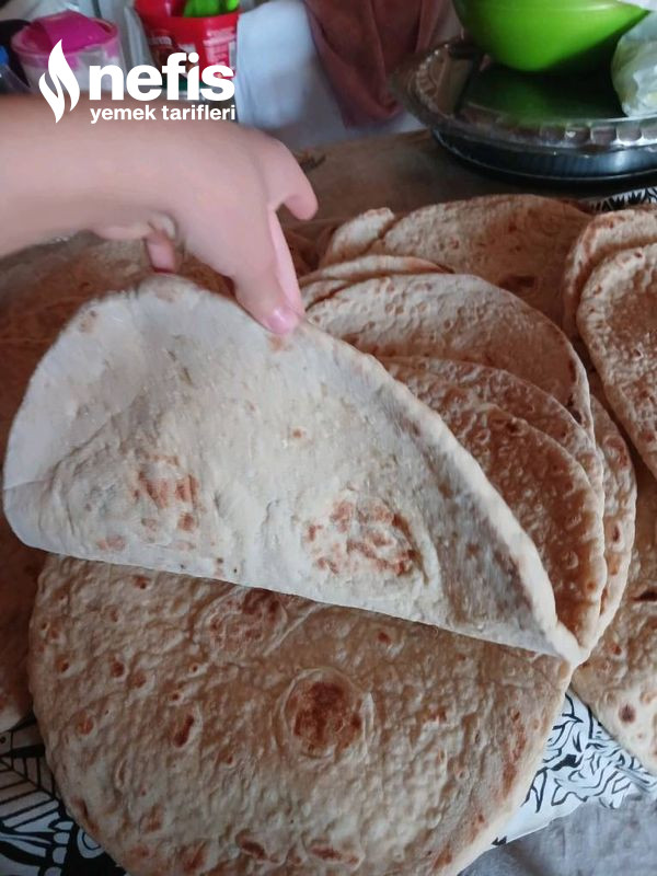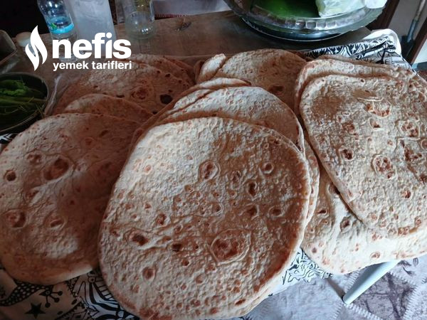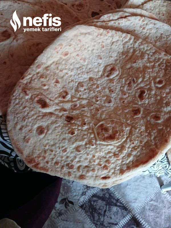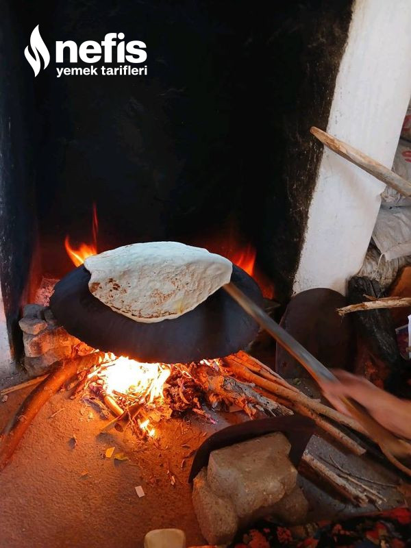 - Daha sonra ısınan saçımızın üstüne hamurumuzu koyuyoruz göz göz olana kadar pişiriyoruz, çeviriyoruz ekmeğimiz pişene kadar birkaç kere çeviriyoruz pişen hamurumuzu alıyoruz afiyet olsun.
