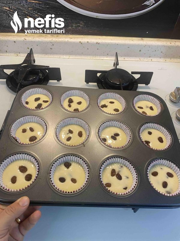 - Fırına vermeden evvel keklerimizin üzerine kuru üzüm yahut damla çikolata koyalım.