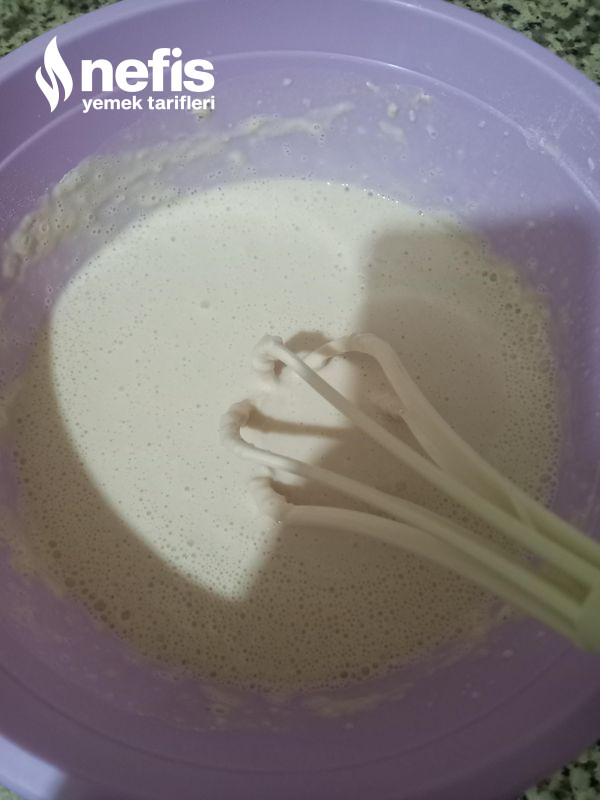 - Tavaya bir çay kaşığı sıvı yağ damlatıp fırçayla tavaya yayalım ve kızgın tavaya kepçe yardımıyla hazırladığımız sıvı hamuru dökelim.