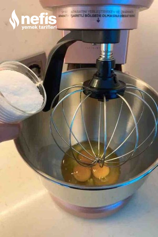 - Yumurta ve şekeri köpürene kadar çırpıyoruz.