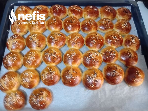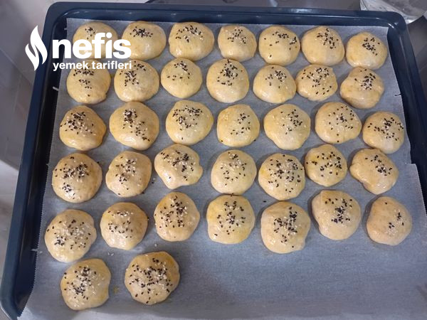 4. Hamurumuzdan 1 yemek kaşığı kadar olacak formda hamur alalım ve elimizle hal verelim tepsimize dizelim üzerine ayırmış olduğumuz yumurta sarısını sürelim ve çörek otu ve susamı üzerine serpelim.