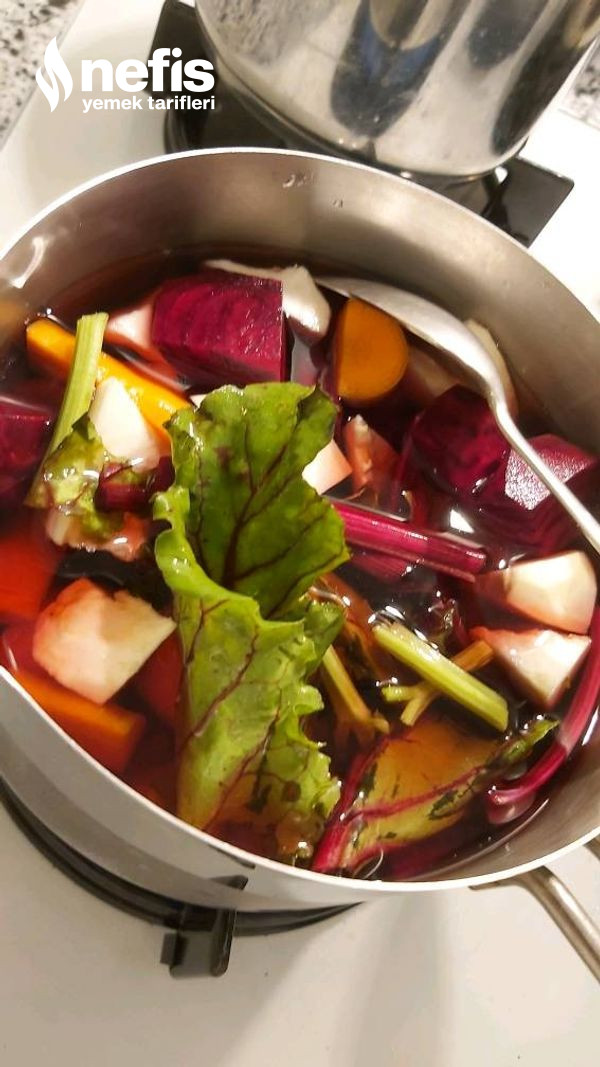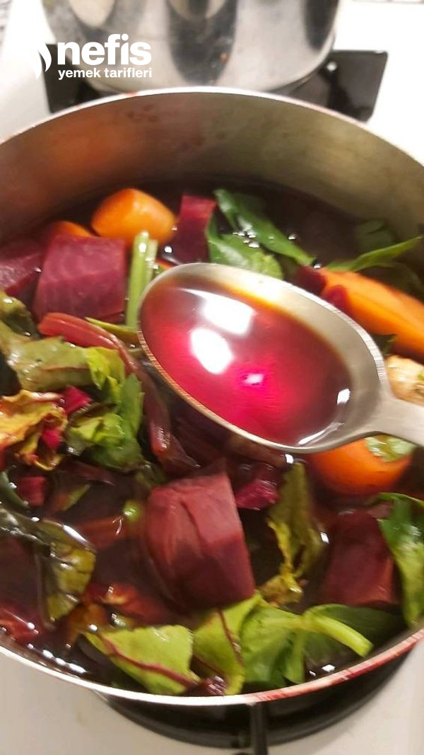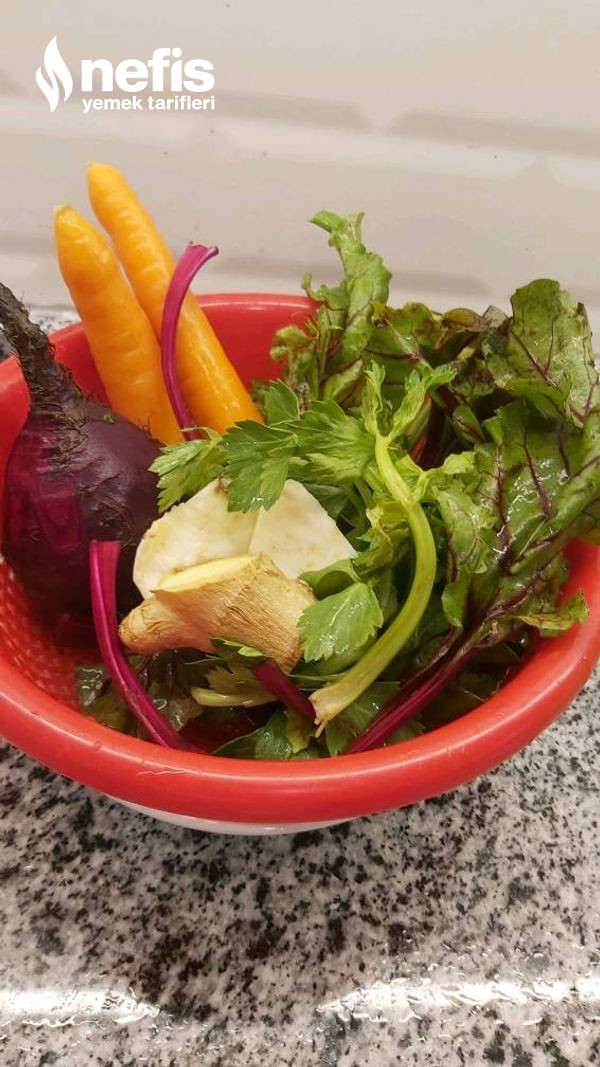- Zencefil, zerdeçal, limon hariç pancar, havuç, zerdeçal ve kereviz ve sapını güzelce yıkayalım. Kabuklarını soyup doğrayalım. 5 su bardağı su ekleyip tencereyi ocağa alalım 1o dakika kaynatalım.