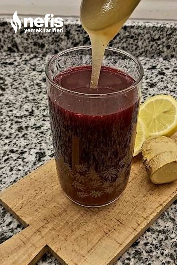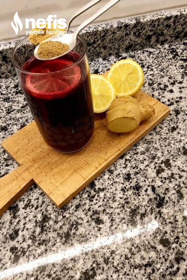 - Suyuna 1 çay kaşığı zencefil, 1 çay kaşığı zerdeçal, 1 tatlı kaşığı bal ve 1 limonun suyunu ekleyip, karıştıralım.