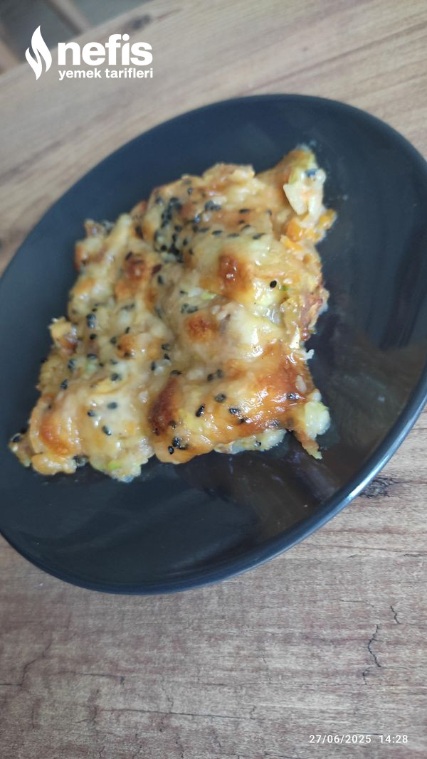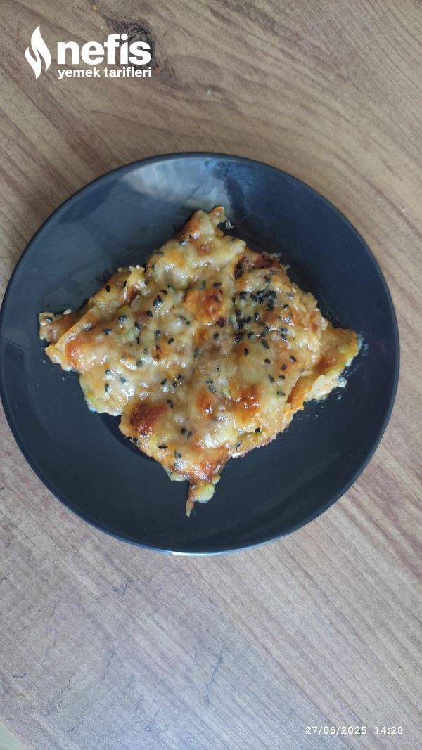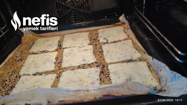 4. Yaklaşık 20 dk evvelce ısıtılmış 180 derece fırında piştikten sonra kaşar dilimlerini dizip tekrar fırınlıyoruz.