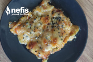 4. Yaklaşık 20 dk evvelce ısıtılmış 180 derece fırında piştikten sonra kaşar dilimlerini dizip tekrar fırınlıyoruz.