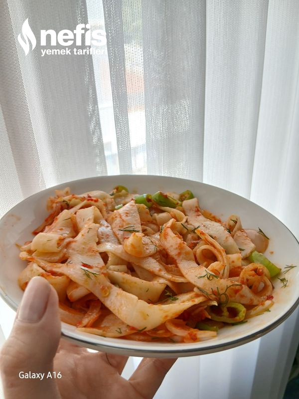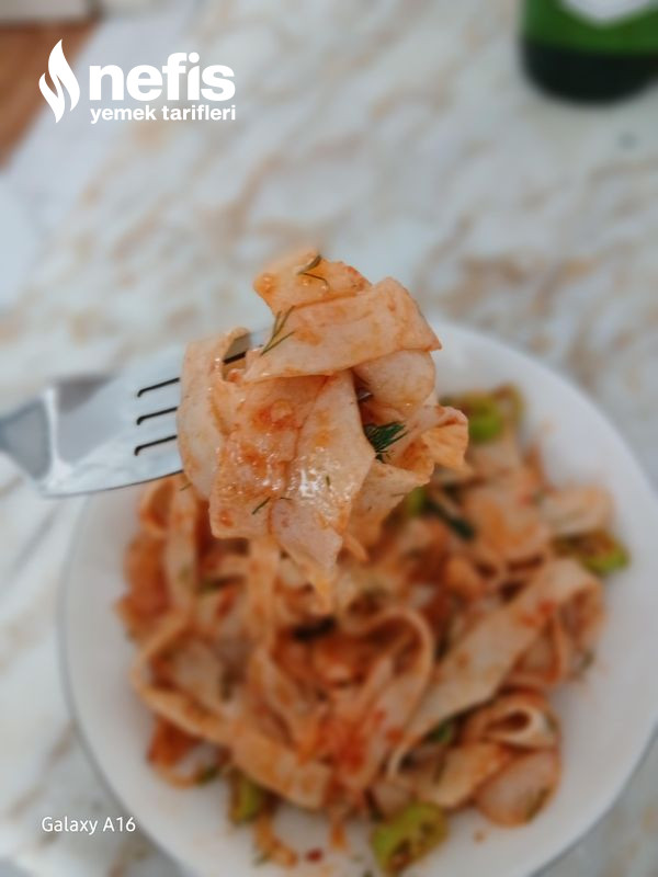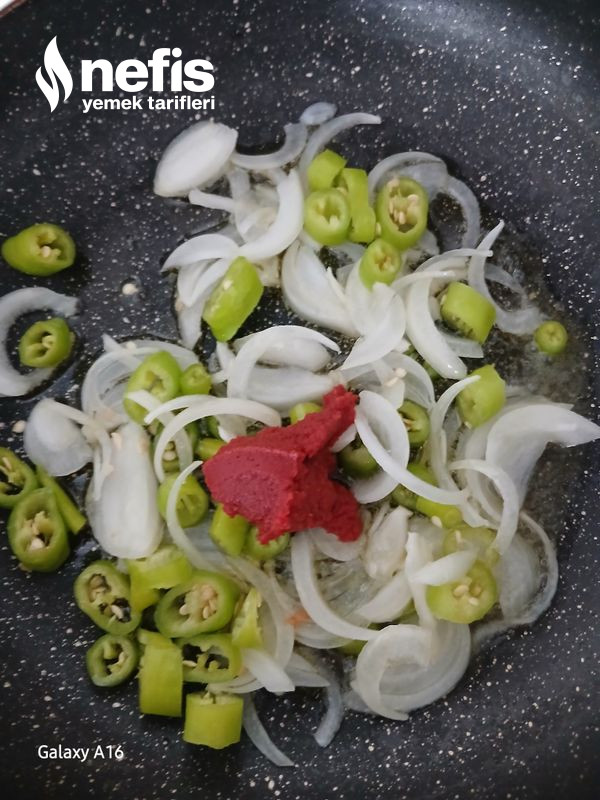 - Kestikten sonra tavamıza zeytinyağı ,soğan ,biber ,salça ekleyerek kavuralım ,kavurma süreci bittikten sonra makarnaları da ekleyip 1 dakika çevirip servis edelim, dilerseniz baharat da ekleyebilirsiniz.