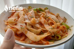 - Kestikten sonra tavamıza zeytinyağı ,soğan ,biber ,salça ekleyerek kavuralım ,kavurma süreci bittikten sonra makarnaları da ekleyip 1 dakika çevirip servis edelim, dilerseniz baharat da ekleyebilirsiniz.