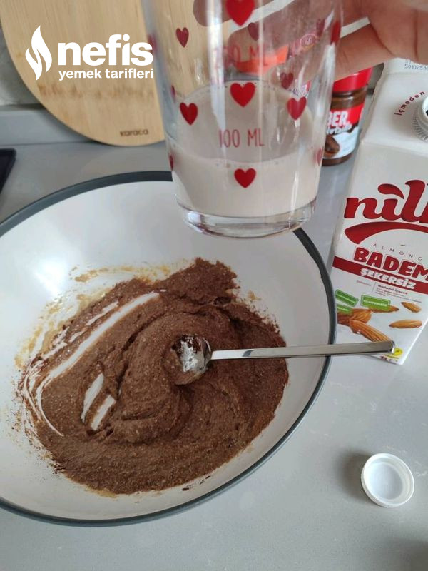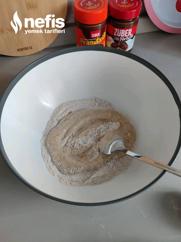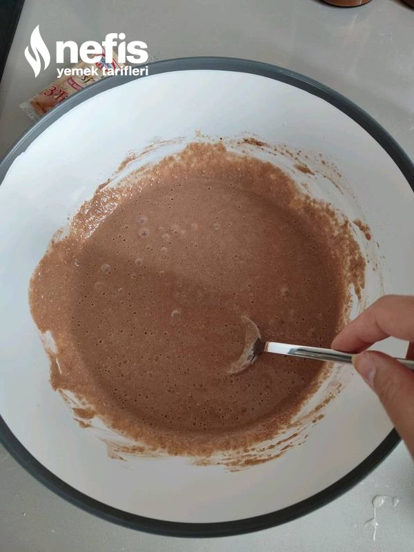 - Un,süt,yumurta,kakao ve pekmezi ezilmiş yahut çekilmiş bir adet muz püresiyle karıştırıp en son da kabartma tozu ekleyip homojen bir karışım elde edin.