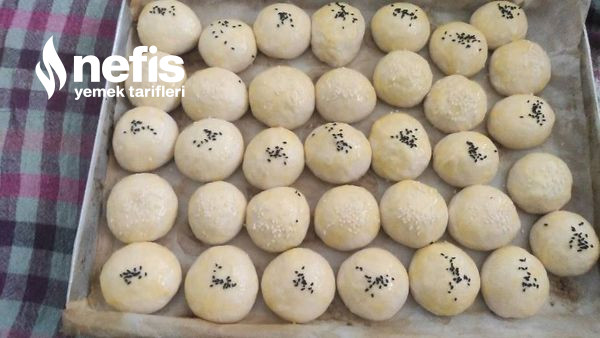 2. Mayalanan hamura yuvarlak form verilerek tepsiye dizilir, üzerine yumurta sarısı sürülerek susam yahut çörek otu serpilir 160° fırında yaklaşık 35 dk alt üst ayarda pişirilir.