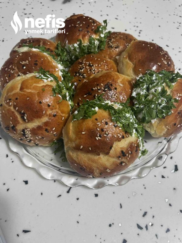 - Ppoğaçaları soğumaya bırakın. Ortadan ikiye kesin, ortasına labne peynirini sürün.