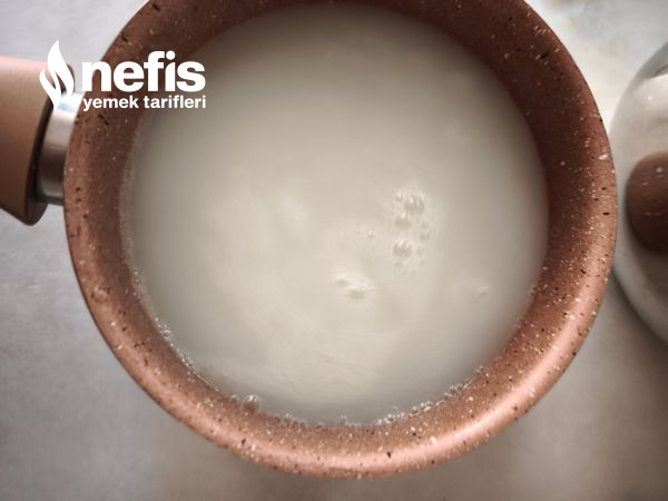 3. Şerbetimizi hazırlayalım. Su süt ve toz şekerimizi bir kaseye alalım. Şerbet kaynamayacaktır.
