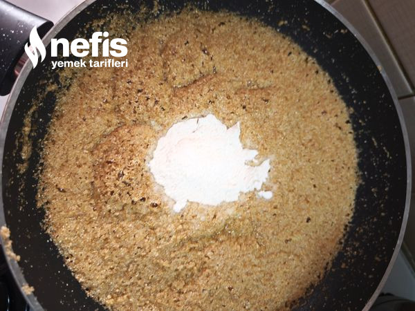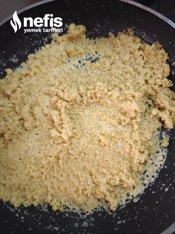 2. İrmikleri tavaya alalım kısık ateşte unumuzu da ekleyelim.