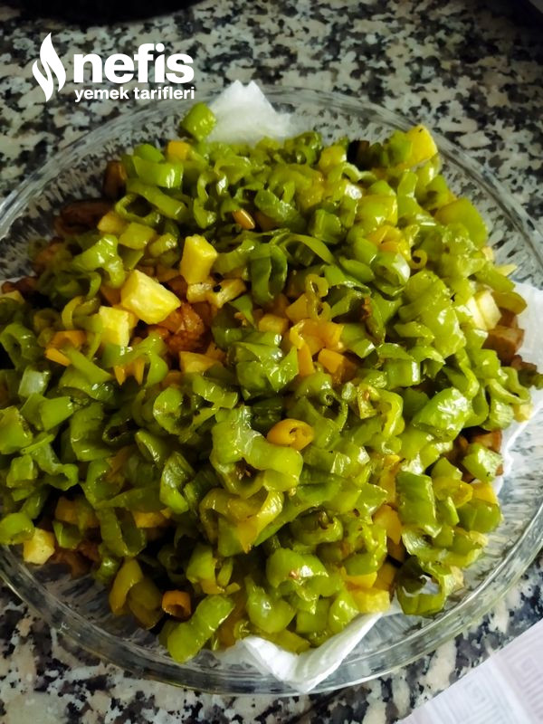 - Biberler yıkanır doğranır birebir form küçük küçük keserek kızartılır.