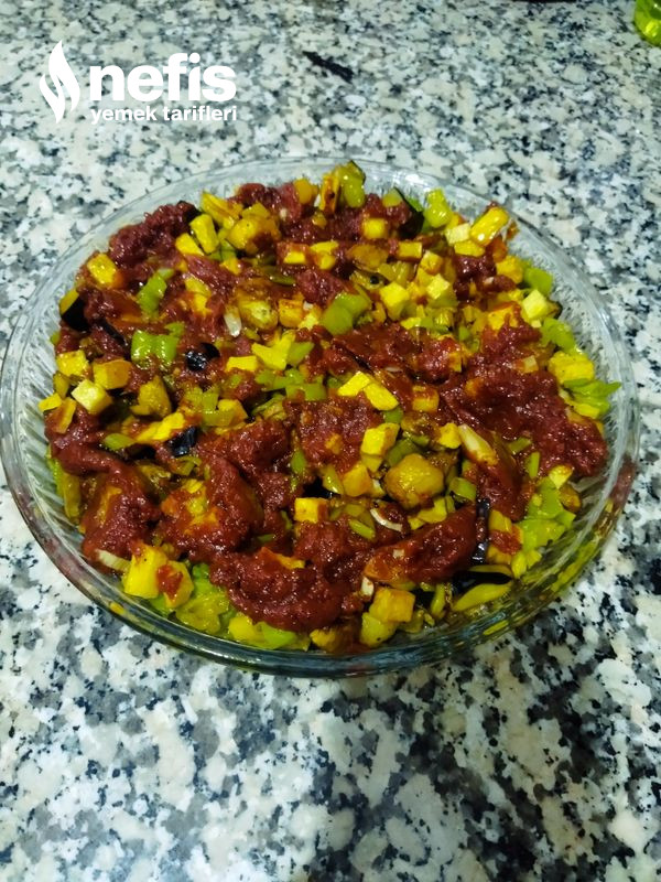 - Hepsi bir ortaya geniş bir kapta harmanlanır.