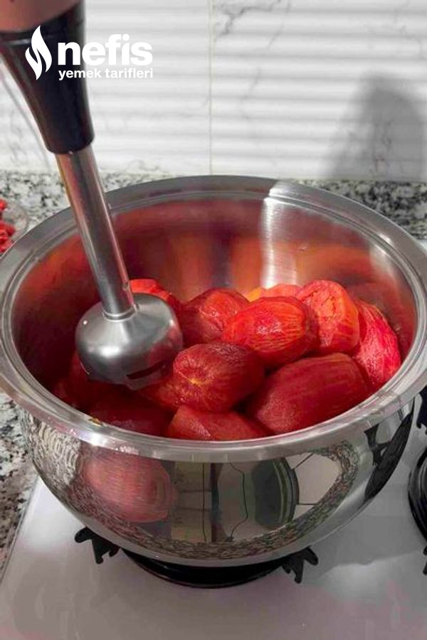 3. Domatesleri isterseniz kabuklarını soymadan yapabilirsiniz ben soydum tencerede blenderdan geçirelim dilersenizde doğrayabilirsiniz.