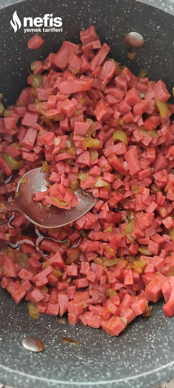 2. Tencerede evvel biberleri sonra salamları pişirelim.