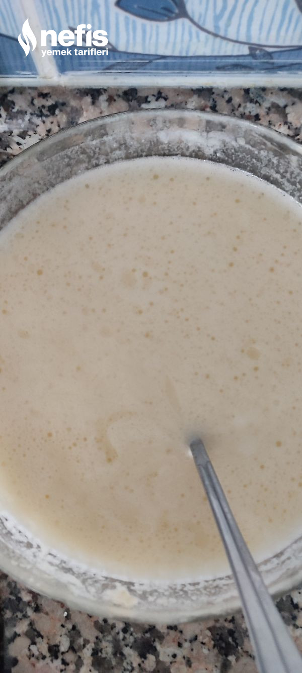 4. Sosu hazırlayalım. 1 yumurtayı çırpıp üzerine sıvı gereçlerin hepsini ekle peşinden un ve kabartma tozunu ekle tüm gereçleri pürüzsüz kıvam alana kadar çırpın.